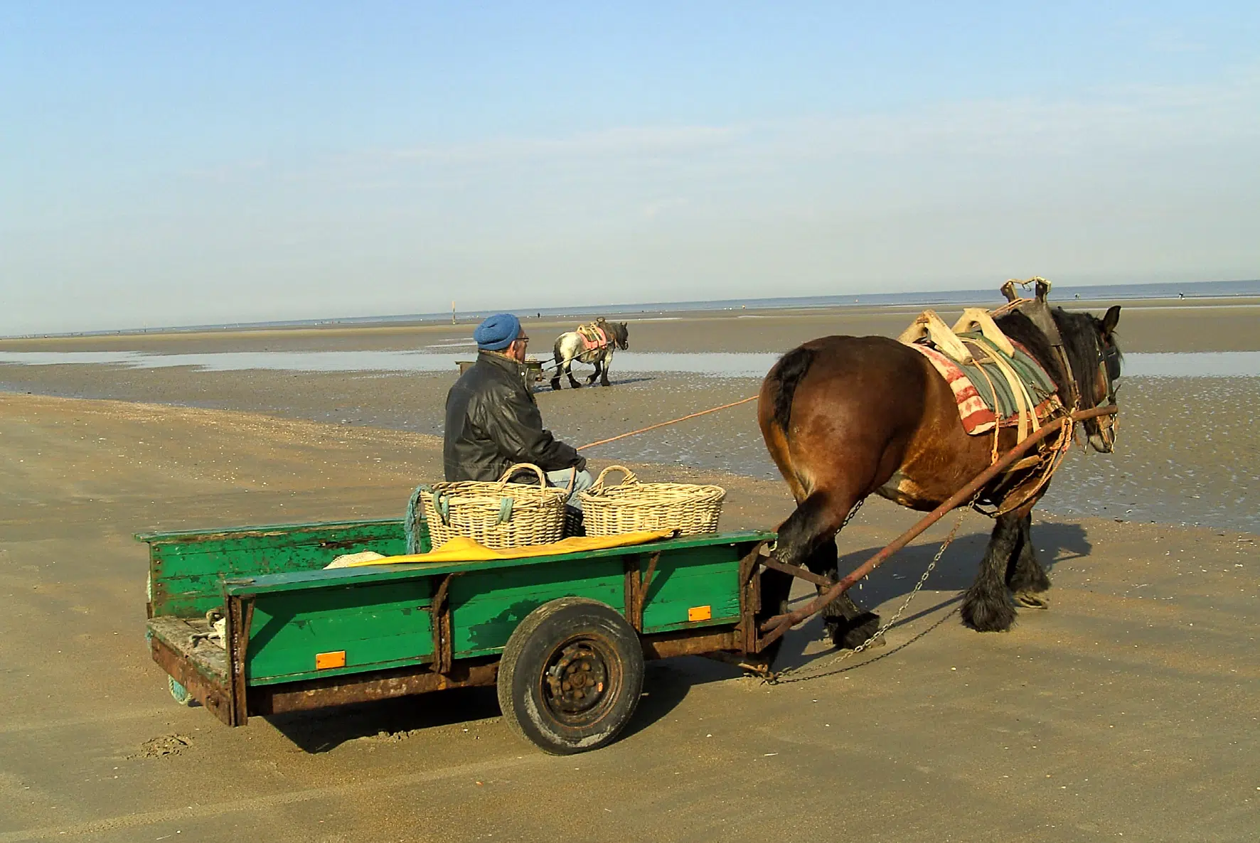 Früher gab es sie entlang der ganzen belgischen Küste, heute findet man sie nur noch in Oostduinkerke: Die Pferdefischer, die im gelben Ölzeug durchs Meer reiten und mit ihren Schleppnetzen die kleinen grauen Nordseegarnelen fangen. Eddy D´Hulster ist einer von ihnen, seit 40 Jahren reitet er hinaus, so wie Johan Vandendriessche, der nicht nur Fischer ist, sondern auch Hufschmied und Pferdetrainer. Zusammen mit seinem Sohn Dominique bildet Johan Arbeitspferde aus, schwere starke Tiere, mit denen man ins Meer reiten und Garnelen fangen kann. Die leckeren Garnelen bestimmen auch den Speiseplan an der flämischen Küste, zum Beispiel in gefüllten Kartoffeln. Oder als Vorspeise zum typisch flämischen Paling in het groen: Aal in grünen Kräutern.